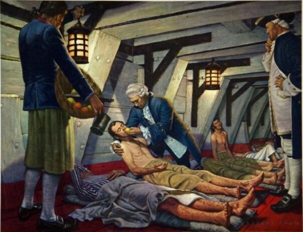 Доктор Джеймс Линд даёт матросу лимон — средство от цинги. Изображение: Robert A. Thon